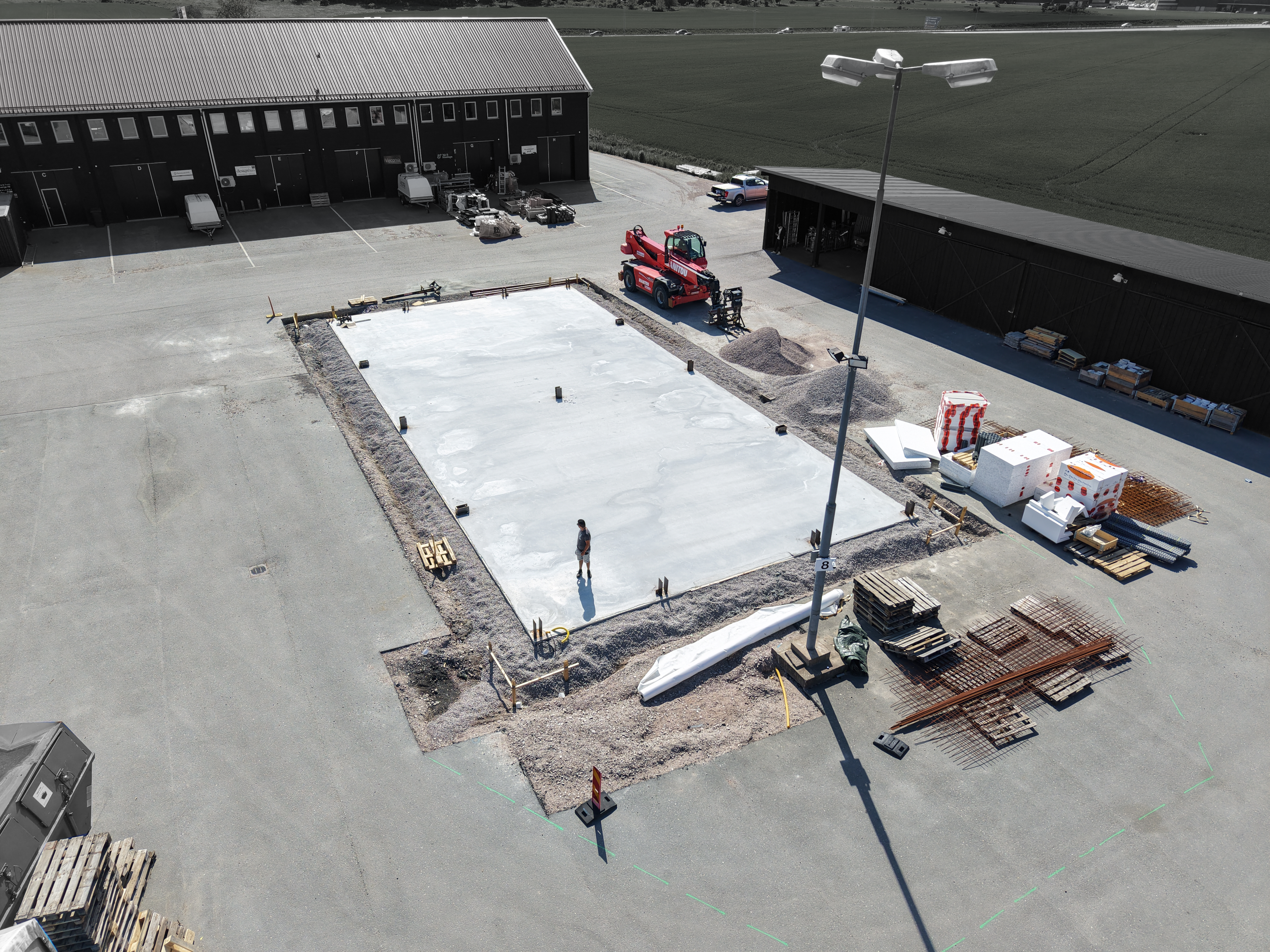 Här anlade vi uppställningsytan för ambulanshelikopterns nya tankstation på Sundbro Flygfält. Kul att få bidra till en viktig funktion på fältet!